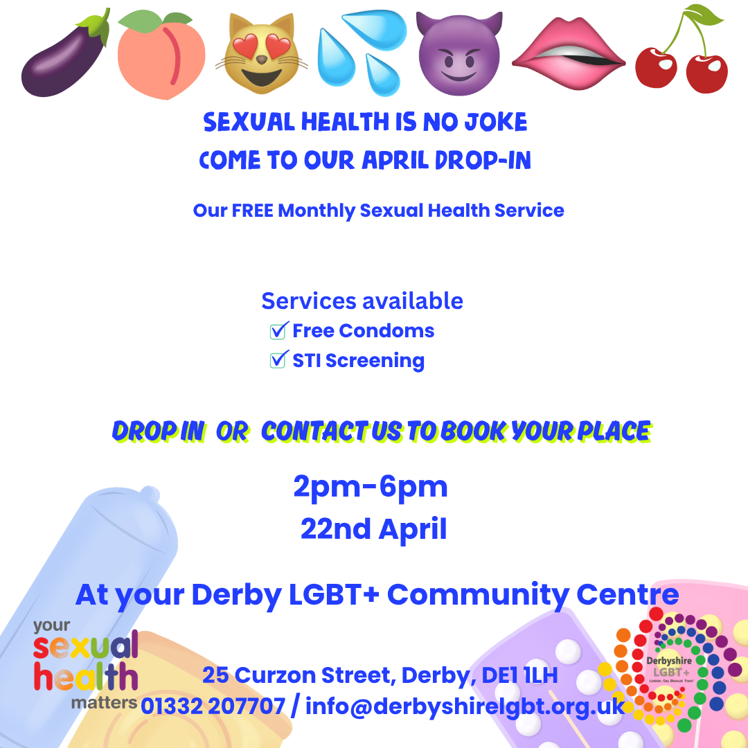 Derbyshire LGBT+ are here to help. We work closely with local sexual health services and can help make sure you have access to all the information you need.